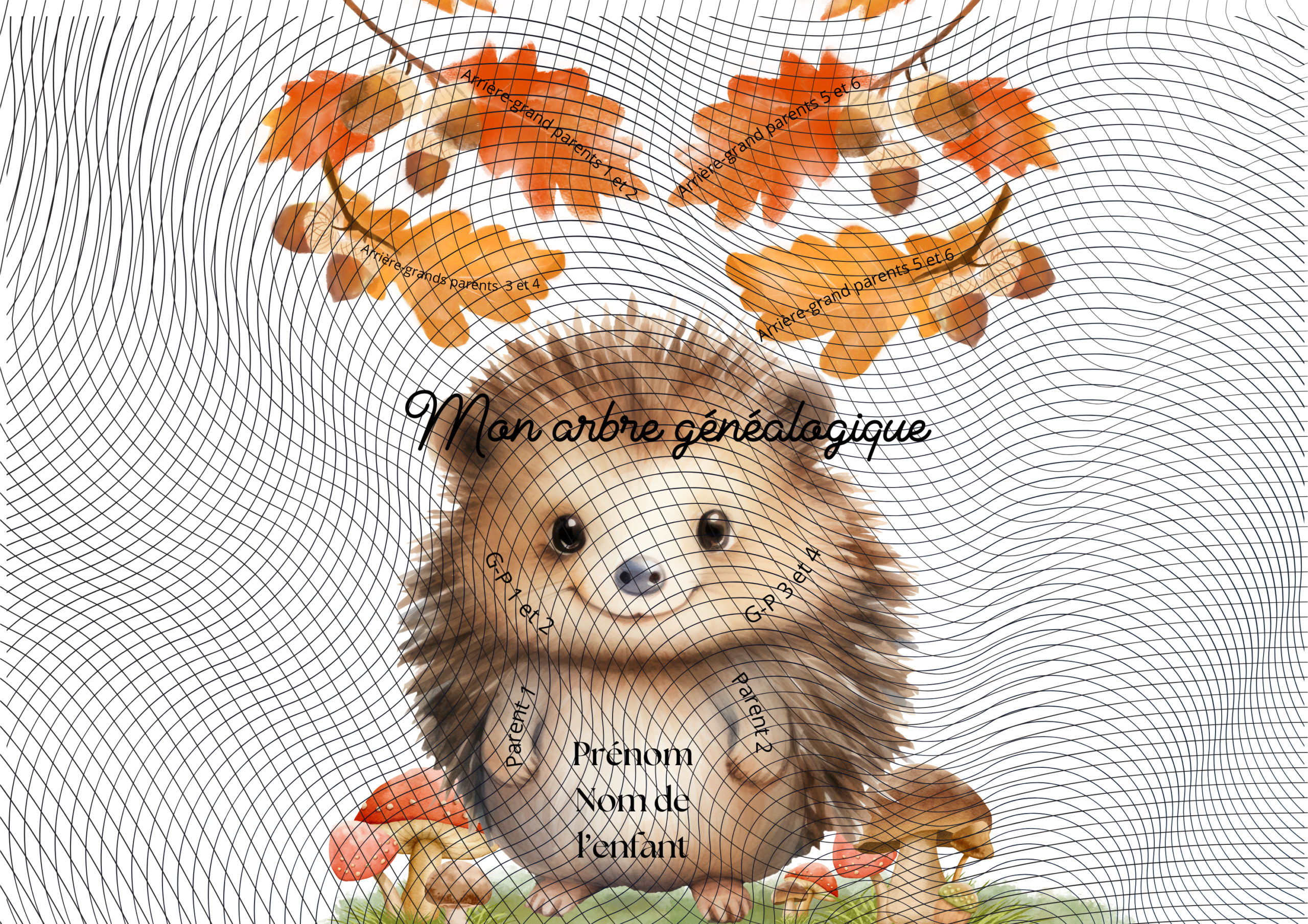 Arbres généalogiques ludiques pour enfants, personnalisés avec l’animal de votre choix : hérisson, chouette, toucan ou loup.